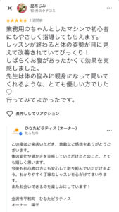 温かいご感想をありがとうございます。初めてで不安もあったとのことですが、終わった後にスッキリ感を実感していただけて安心いたしました。普段使わない筋肉を心地よく動かせるのがマシンピラティスの良さです。次回もご一緒できるのを楽しみにしております。